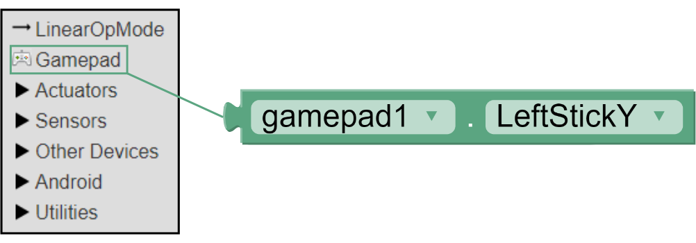 From the Gamepad Menu in Blocks select the <img src="https://1359443677-files.gitbook.io/~/files/v0/b/gitbook-legacy-files/o/assets%2F-M4_pJHI8HTuZFQTNfcy%2F-MWACJyDlnpPjKwQvDeW%2F-MWBHSepopUHbk0AbzGq%2Fgamepad%20-%20leftsticky.svg?alt=media&#x26;token=214b31c1-622c-4913-884c-a6b9d2e6ebb9" alt="" data-size="original"> Bloc&#x6B;*.*&#x20;