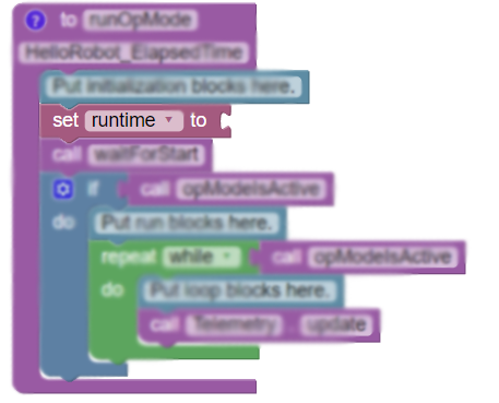 In order to utilize elements of the ElapsedTime, runtime will act as the ElapsedTime variable. Add the block to the