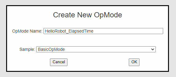 For this section, let's start by creating a new OpMode named HelloRobot_ElapsedTime using the BasicOpMode sample.