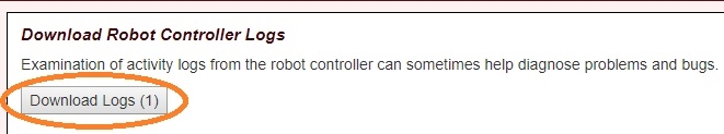 1.Open the Robot Controller Console 2. Select the Manage page 3. Press the Download Logs button
