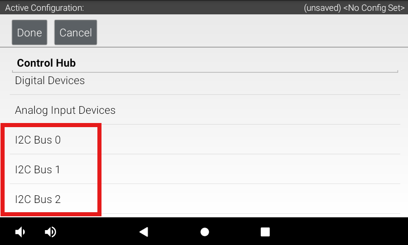 Next, scroll to find the option to add something to the I2C Bus. **Note:** The internal IMU appears in I2C Bus 0. For this example, we are adding the 9-Axis IMU to I2C Bus 1.