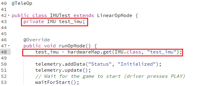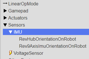 <figure><img src="https://1359443677-files.gitbook.io/~/files/v0/b/gitbook-x-prod.appspot.com/o/spaces%2FUOOiQ4S2QcMWmVoSmeQ8%2Fuploads%2FKhZR3ZQ4i4DrzRbF6yjw%2Fimage.png?alt=media&#x26;token=f14229cc-c3f7-4284-bcd7-fe9e0940ddef" alt=""><figcaption><p>The configured IMU appearing in OnBot's hardwareMap</p></figcaption></figure>