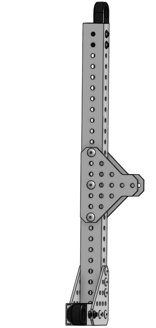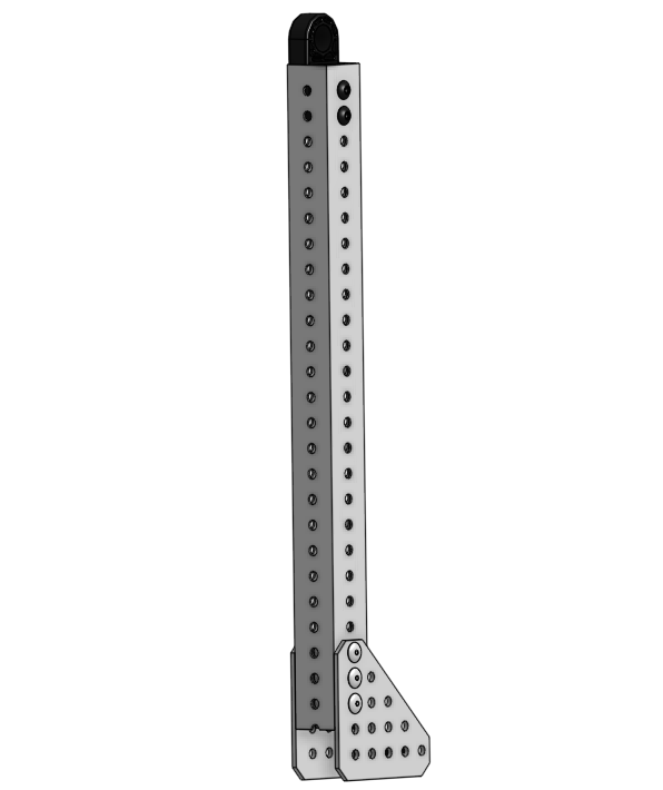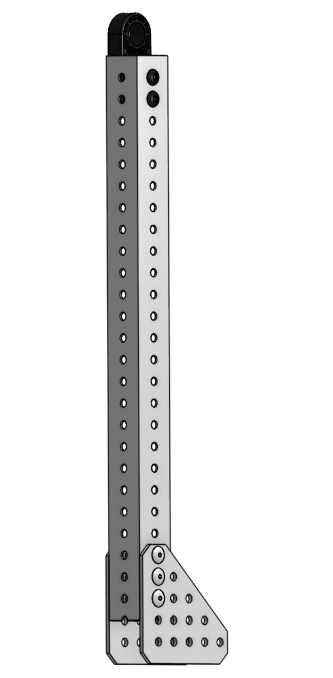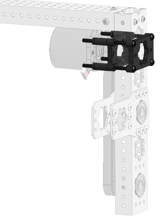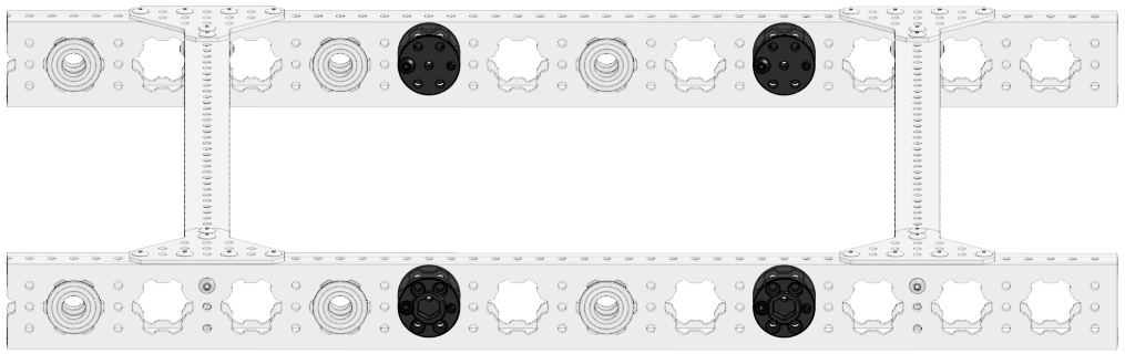 Use 2-1/2in Screws to secure the Four-Bar assembly to the Drivetrain. You will be using the 11th and 13th holes from the edge of drivetrain. Please Note: This is assembly with our MAXSwerve Drivetrain.