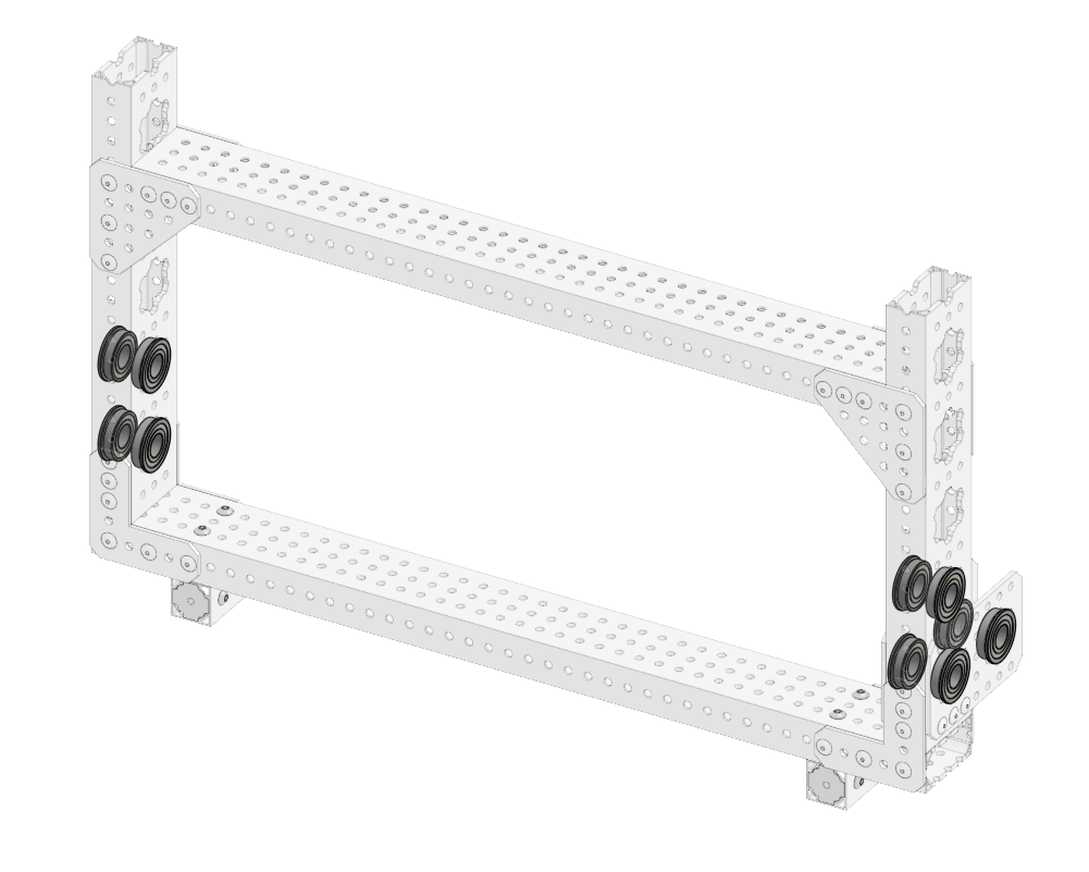 Use 2in Screws, nuts and spacers to secure the Turnbuckle Angle Braces to the Drivetrain. The spacer should go between the Ball Joint Rod End and the frame. You will be using the 19th Please Note: This is assembly with our MAXSwerve Drivetrain.