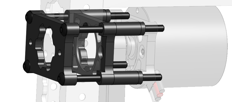 Attach the MAXPlanetary system to the 1/2in Hex Socket Output using the MAXPlanetary hardware. Secure the system to the MAXSpline Brackets with a 2-1/2in screw, a 1in spacer between the brackets, and the 3/4in & 1/8in spacers between the brackets and the MAXPlanetary system.