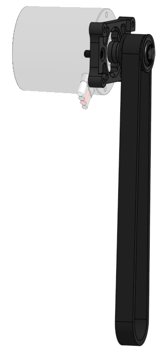 Attach the two arms from the previous steps to the 1/2in Hex Shaft as shown, with a 1/8in spacer and screw on each side.