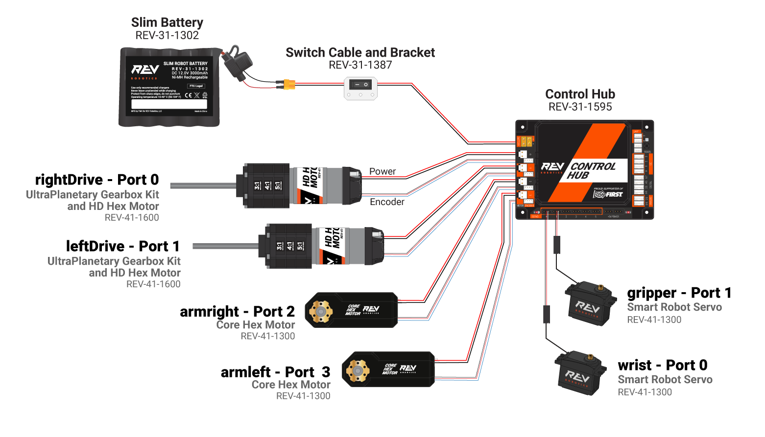 Before getting started with programming we needed to create a configuration file. Below is an overview of how the robot is configured for the teleop code to function as expected: