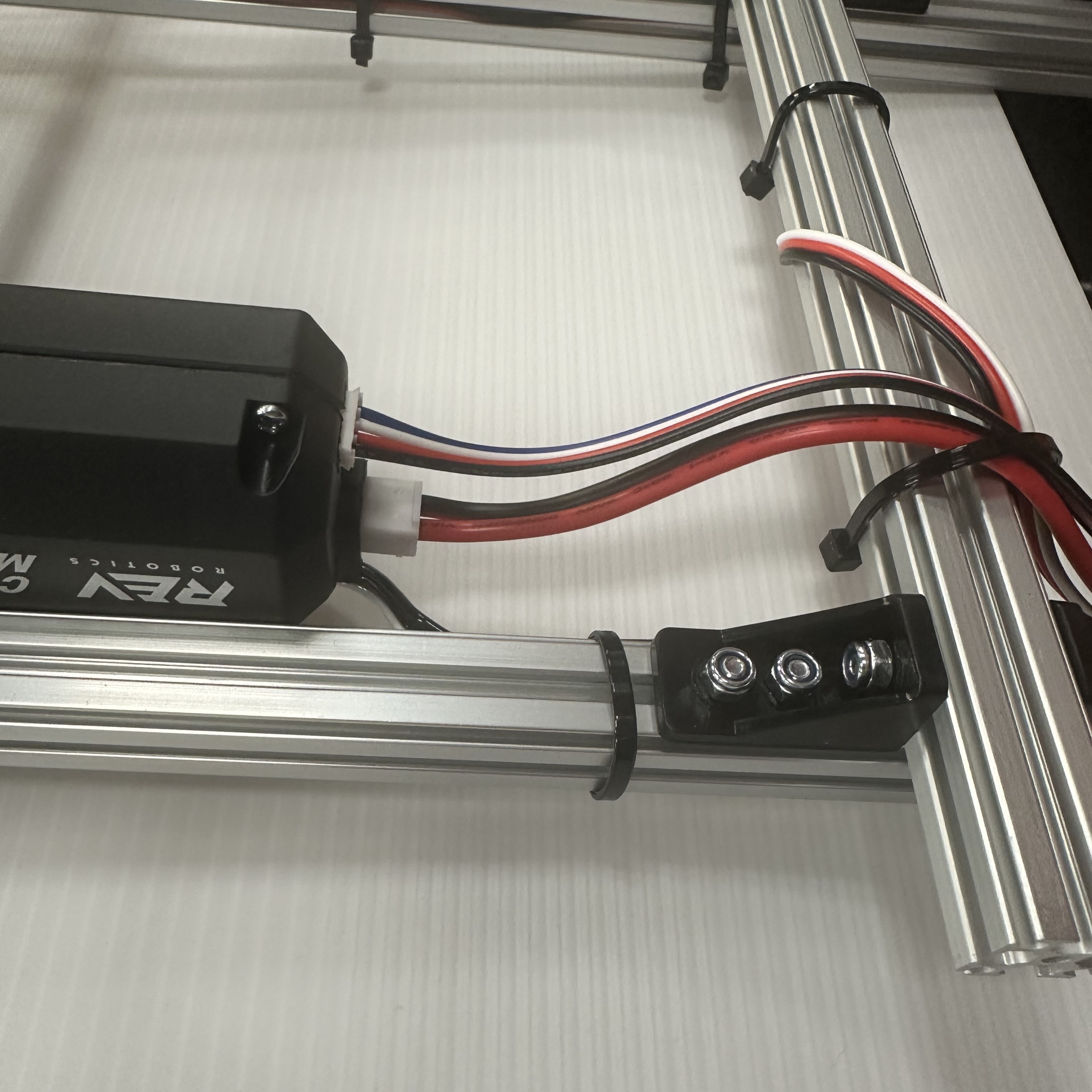 One of the most important steps for a reliable and safe robot is wire management. Wire management involves bundling and routing wires along a defined path to the electrical parts, such as servos and motors. Wires can bundled with zip ties, wrapped in tape, tucked into extrusion, and routed away from moving parts of your robot.&#x20;