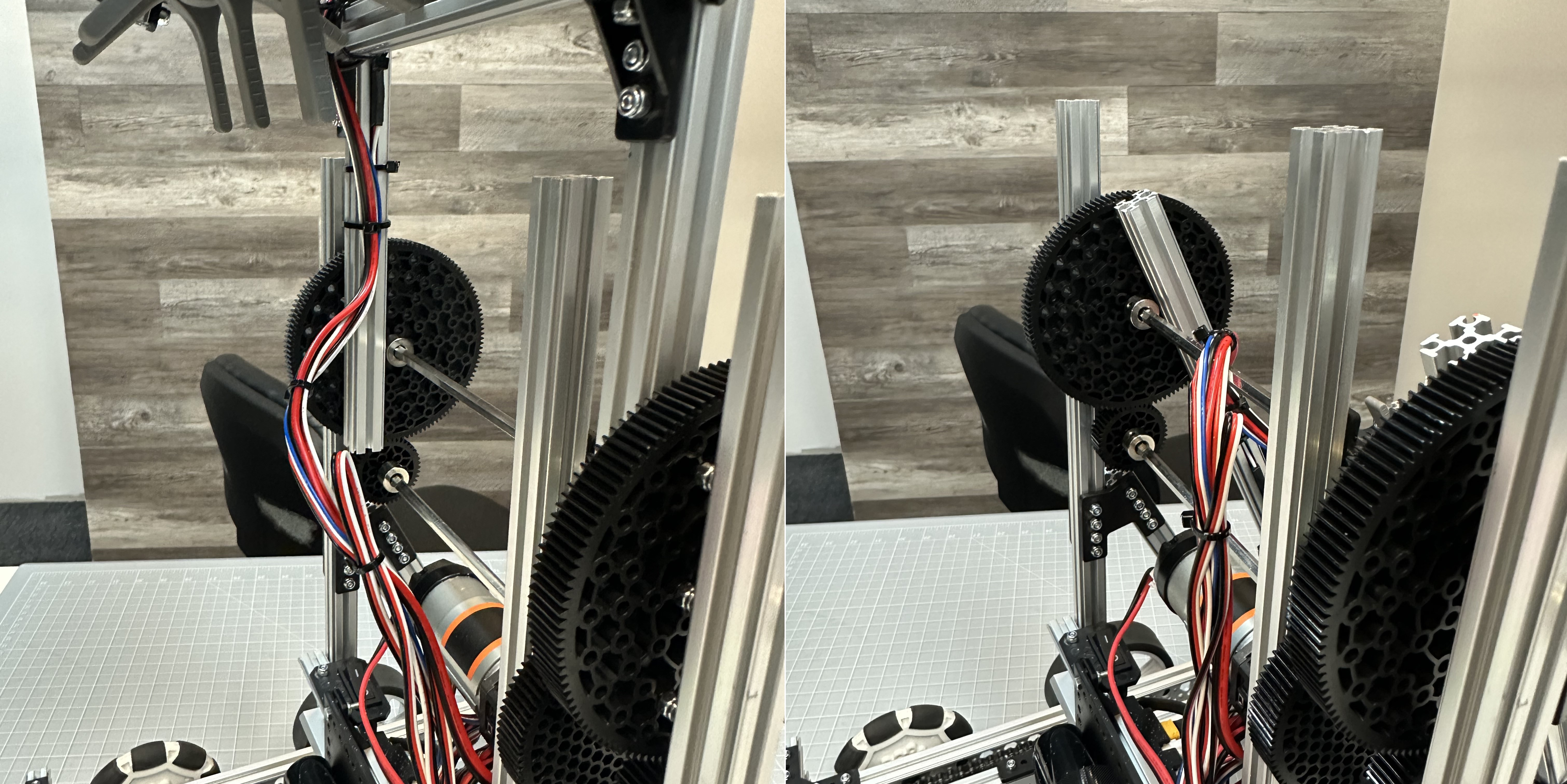 There are points on the robot that can catch an unconstrainted wire and pinch it causing it to be damaged or disconnected. This is most noticeable with the gears on the arm and the servo wires, however, the arm still needs to move we can not completely constrain the wires.&#x20;