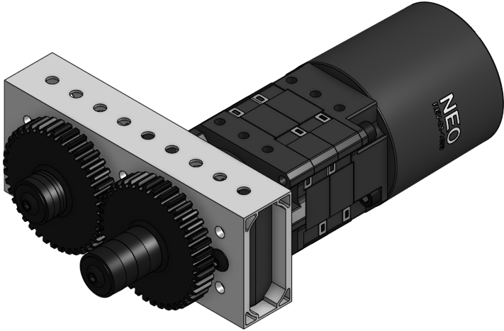 Showcases NEO 550 and UltraPlanetary driving two 20DP Gears between MAXPlate and MAXTubing