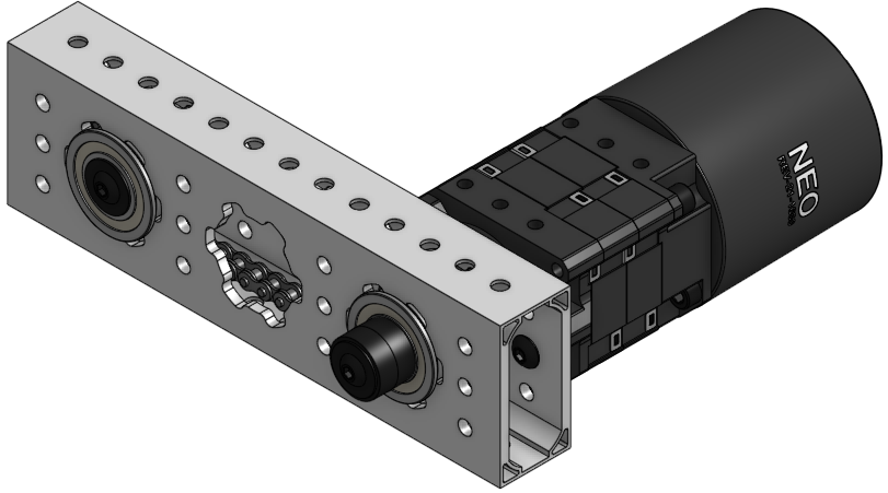 Using an Offset Mount bracket to mount a NEO V1.1 with the MAXPlanetary Gearbox along the side of a MAXTube with no pattern