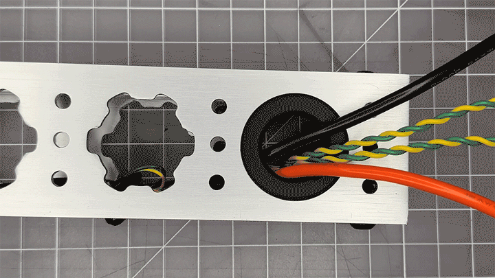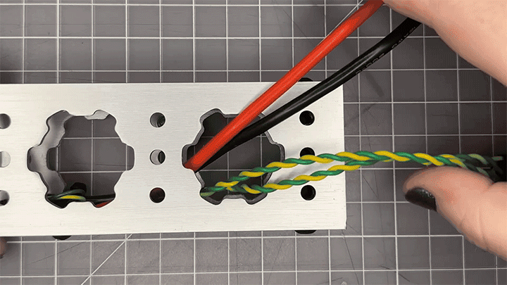 Double-check that both lips of the MAX Grommet are covering all sharp edges from the pattern hole. Now you can safely move your wires without worry.