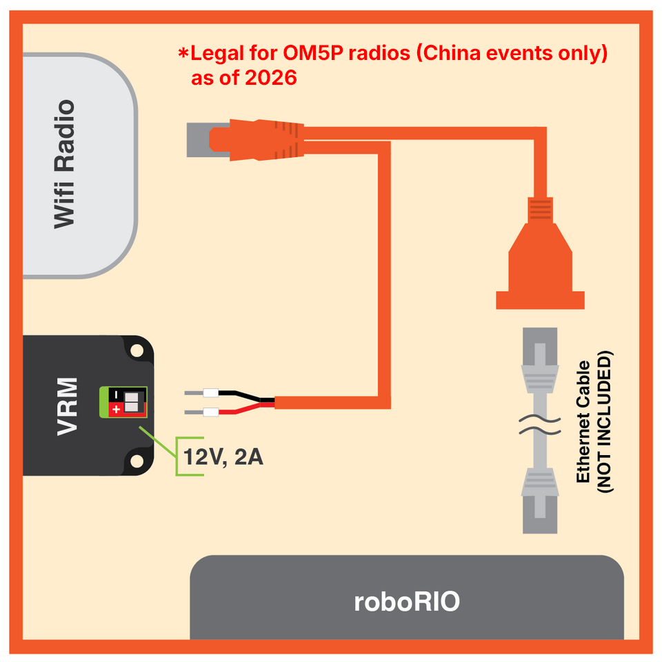 As of the 2026 *FIRST* Robotics Competition Season, the POE Injector Cable (REV-11-1210) is only legal with the OM5P radios.