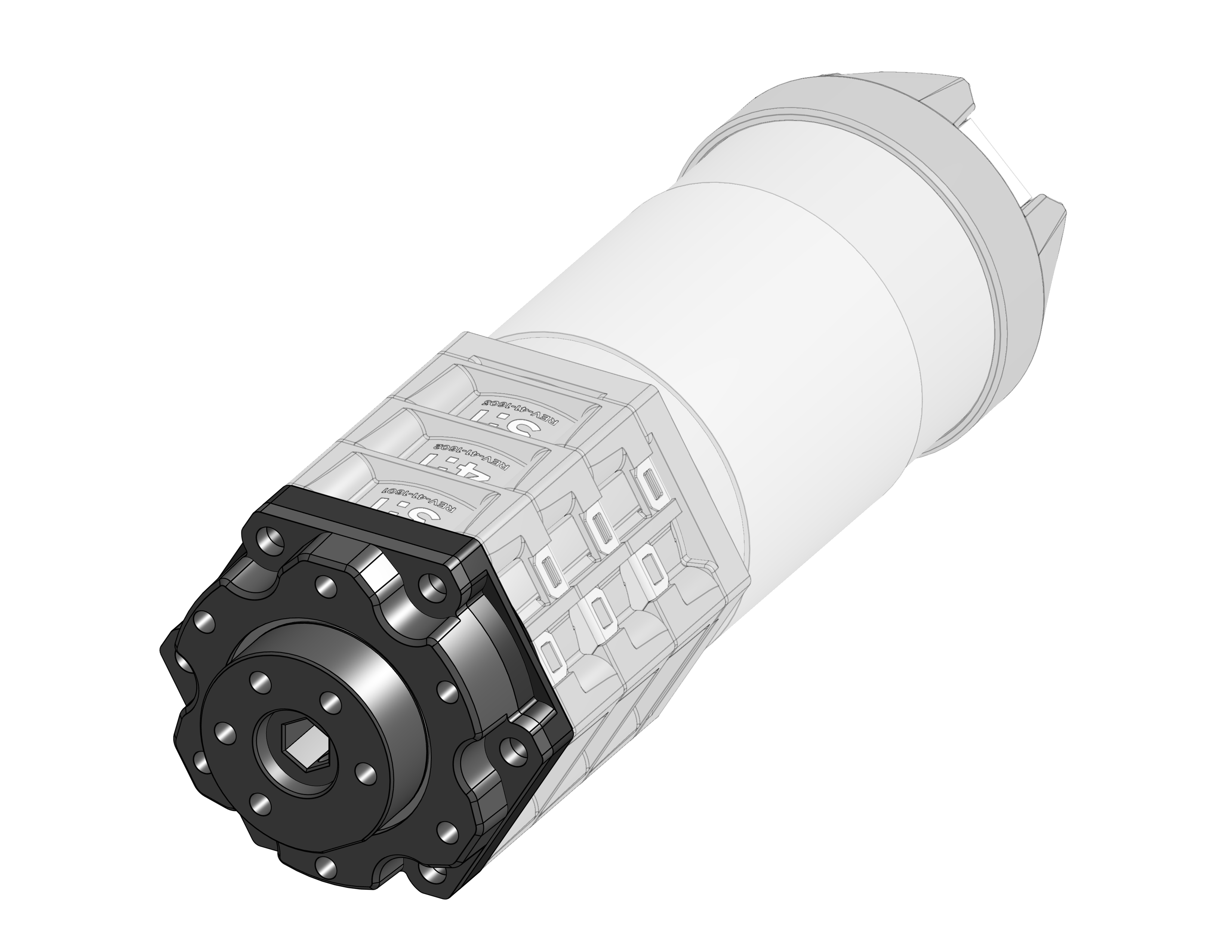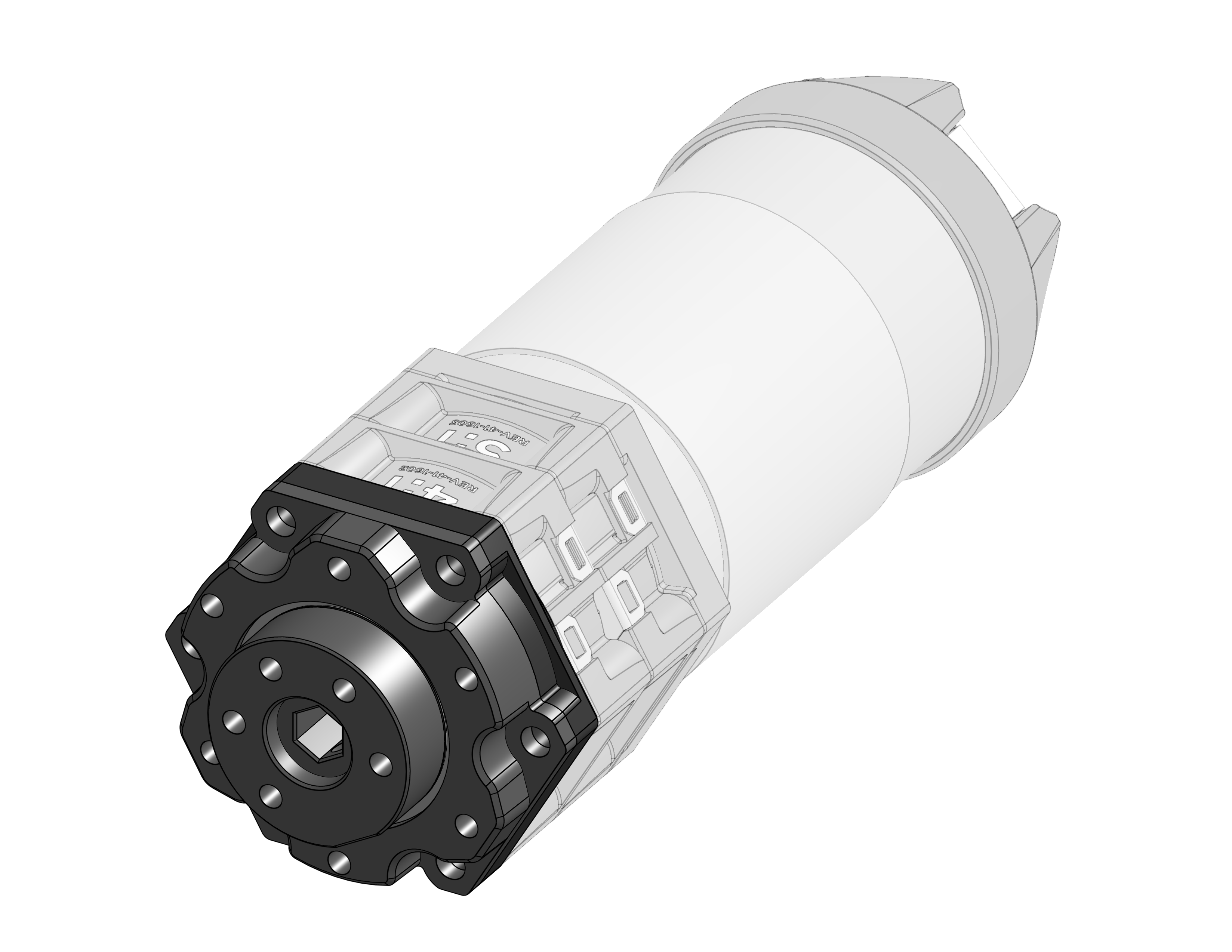 The Output Cartridge of the UltraPlanetary Gearbox allows for two different methods of powering motion by either attaching any length of 5mm hex shaft or attaching a sprocket, gear, pulley, or wheel to the motion pattern on the Output Cartridge. For adding a shaft on the UltraPlanetary Gearbox just loosen the set screw, slide in a hex shaft, and tighten the set screw.