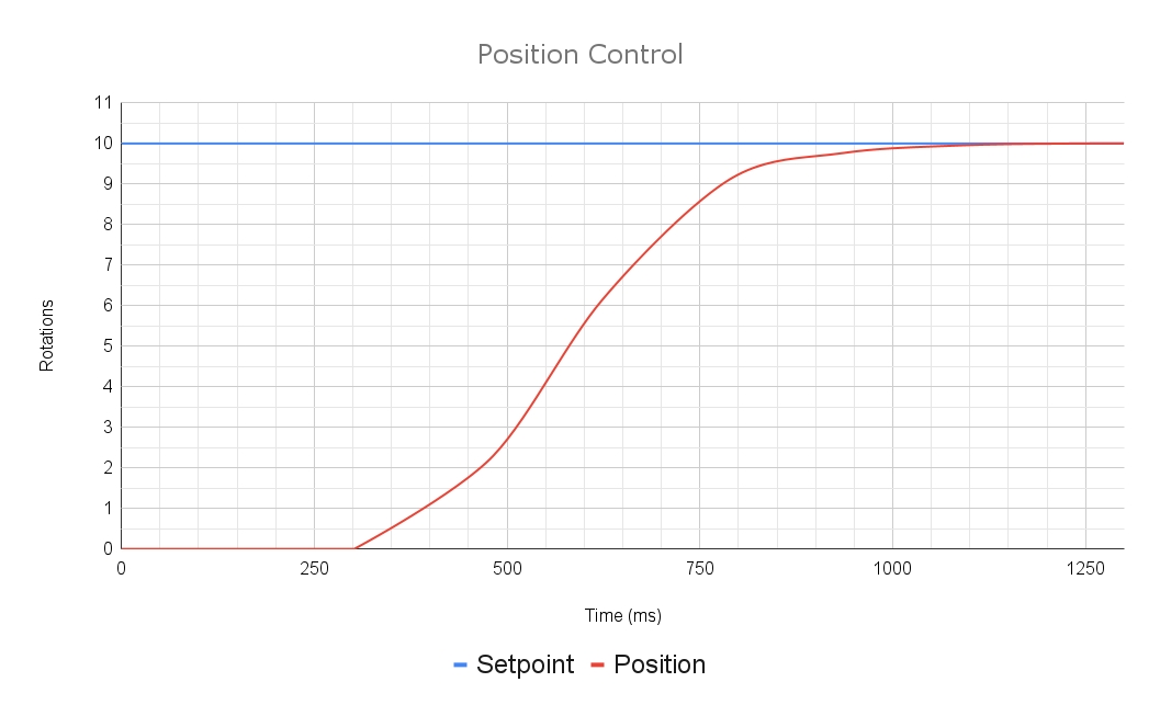 Position Control is used to point the motor in a specific direction. It takes a setpoint in rotations and uses the PID loop to move to that position. The Position control mode pipes directly into a PID controller with the configured encoder.
